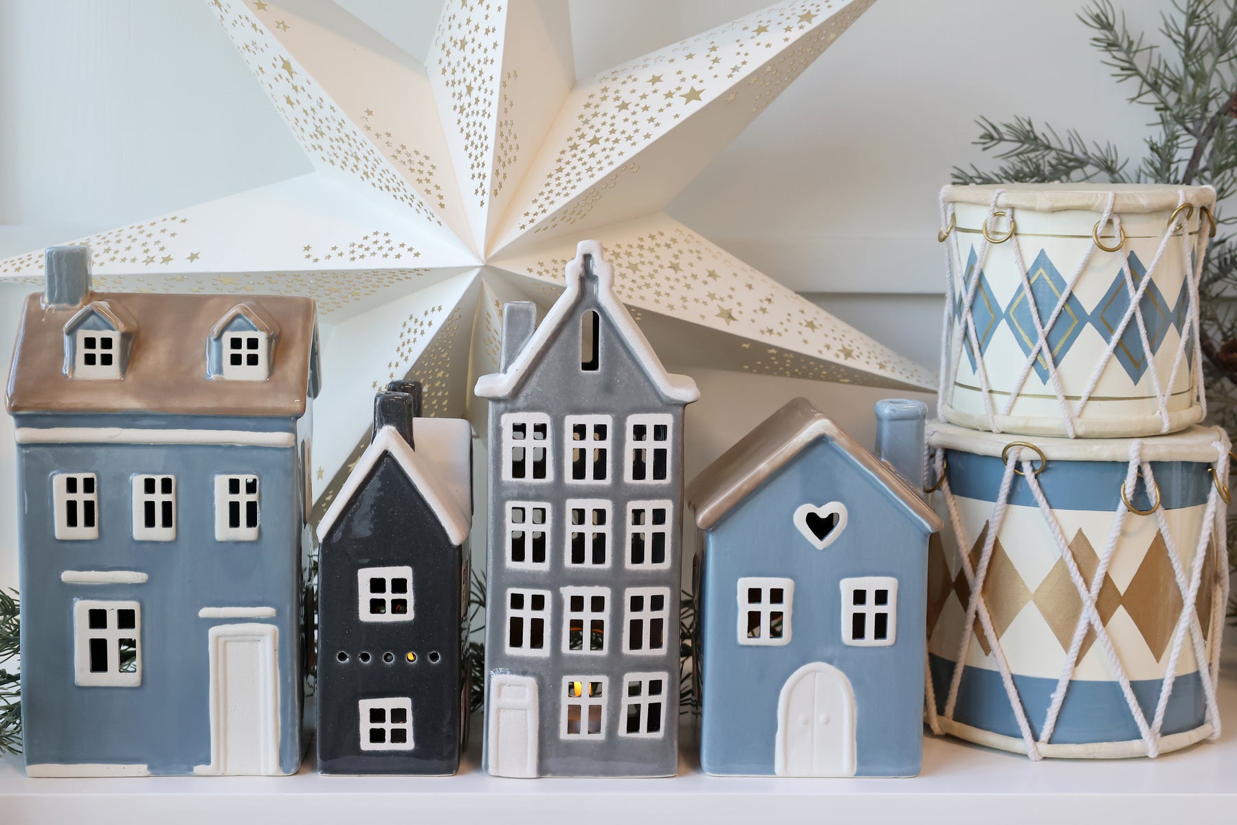 Photophore Chamonix en grès bleu – H25 cm | Chic Antique