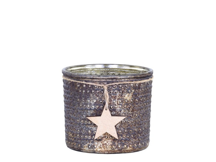 Savourez un moment cosy et chic avec le photophore en verre irisé, à pois de Chic Antique. Orné d'une étoile de bois, il diffusera une lumière douce et romantique dans votre intérieur, ajoutant une touche apaisante et supplémentaire à votre décor.