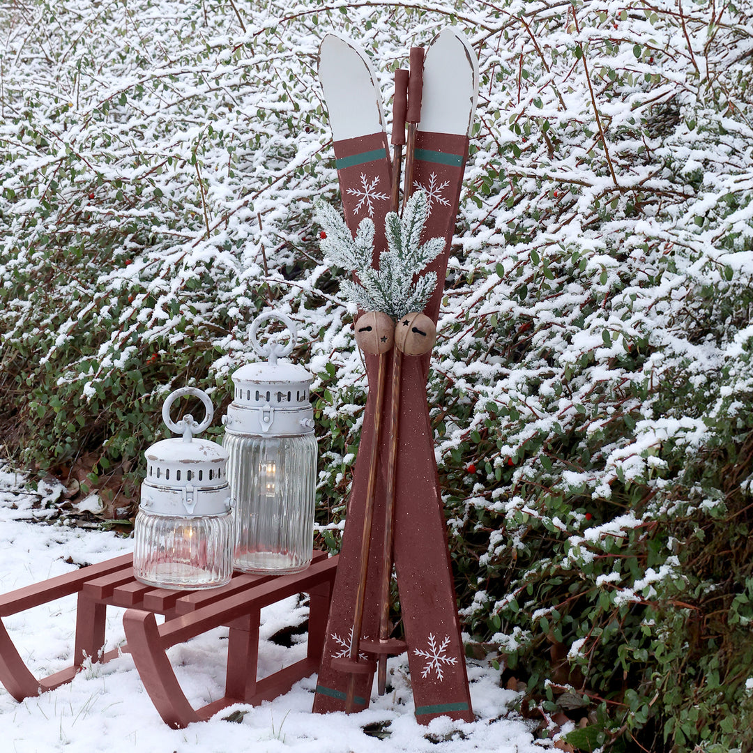 Set de 2 raquettes à neige effet vintage – décoration murale en bois