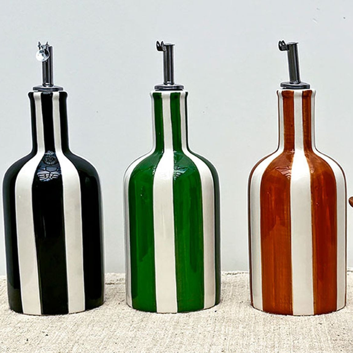 Apportez une touche élégante et tendance à votre cuisine avec cet huilier en faïence signé Opjet. Ses rayures vert sapin et blanches lui donnent un style sobre et chic, parfait pour une table conviviale ou un plan de travail raffiné.