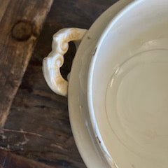 Soupière ancienne en faïence blanche et bleue – pièce déco vintage