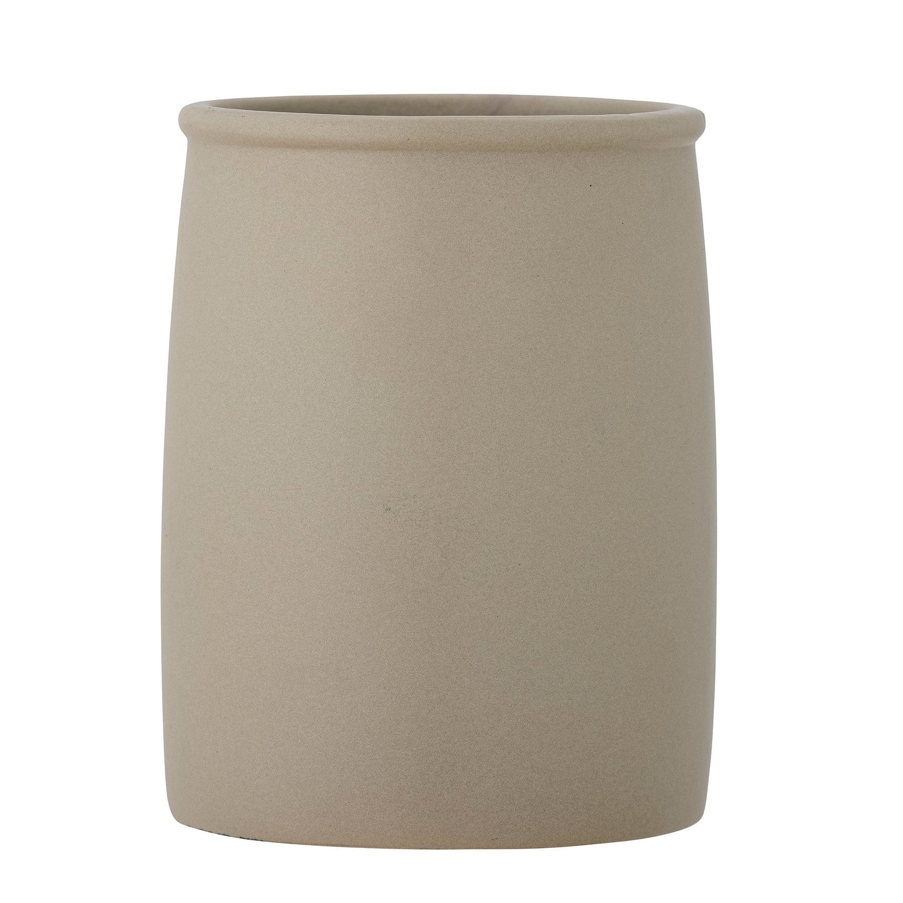 un pot à ustensiles élégant de Bloomingville, un rouleau à pâtisserie travaillé de Chic Antique et des couverts à salade , décor blanc en émail alimentaire Van Deurs.