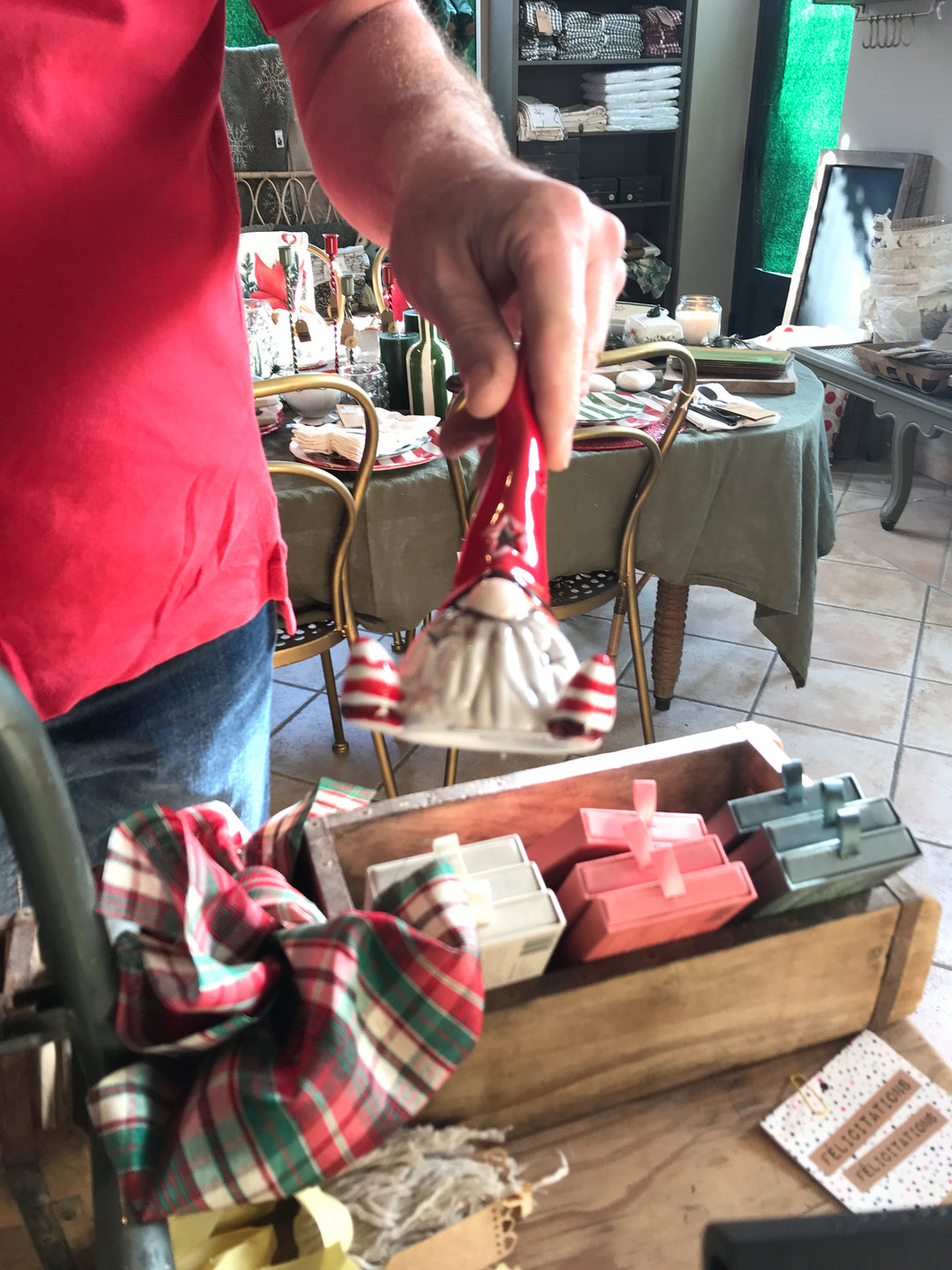 Gnome décoratif beige – Textile écossais – Grand format (13×55×12 cm)