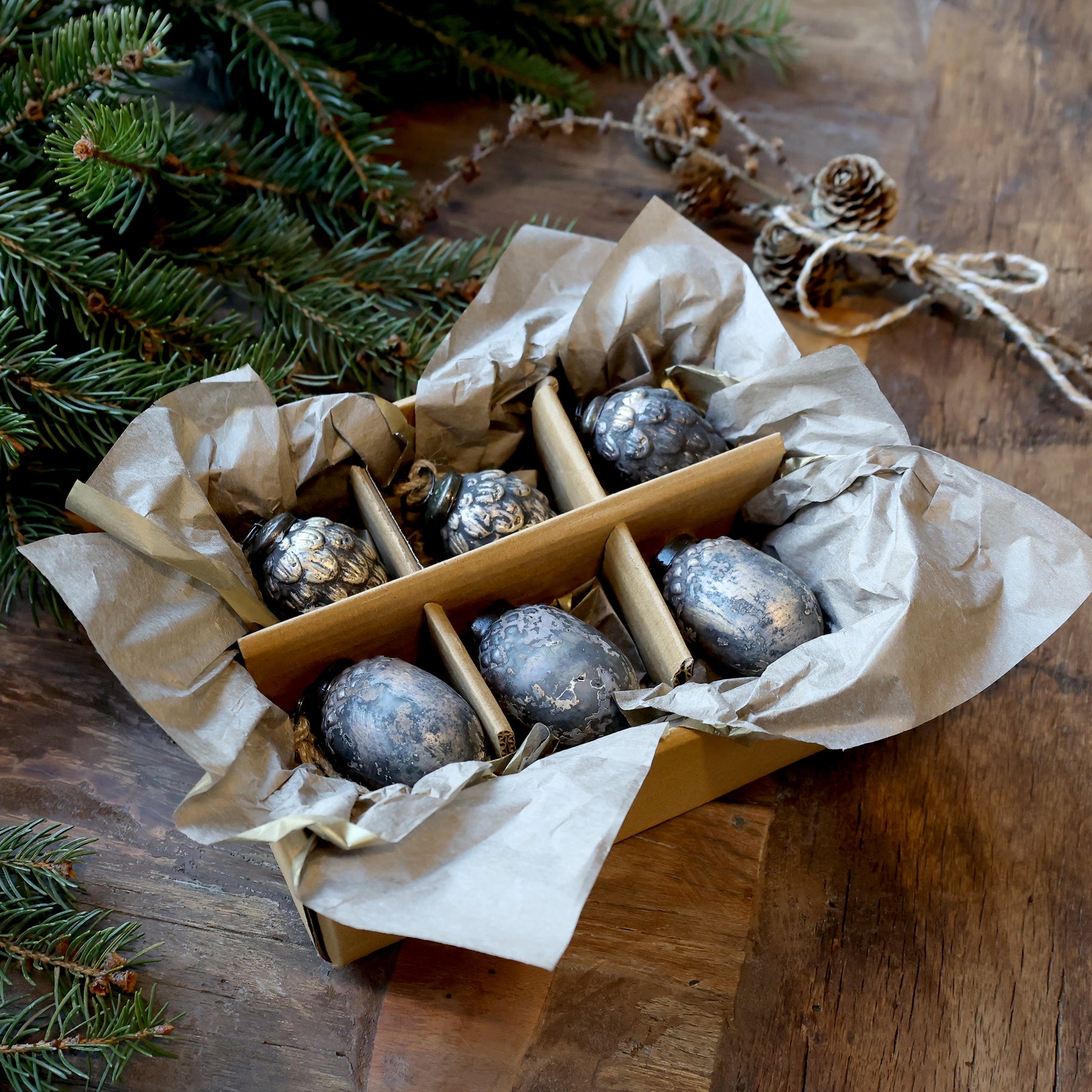 Set de 6 boules de Noël en forme de glands signées Chic Antique. Très raffiné